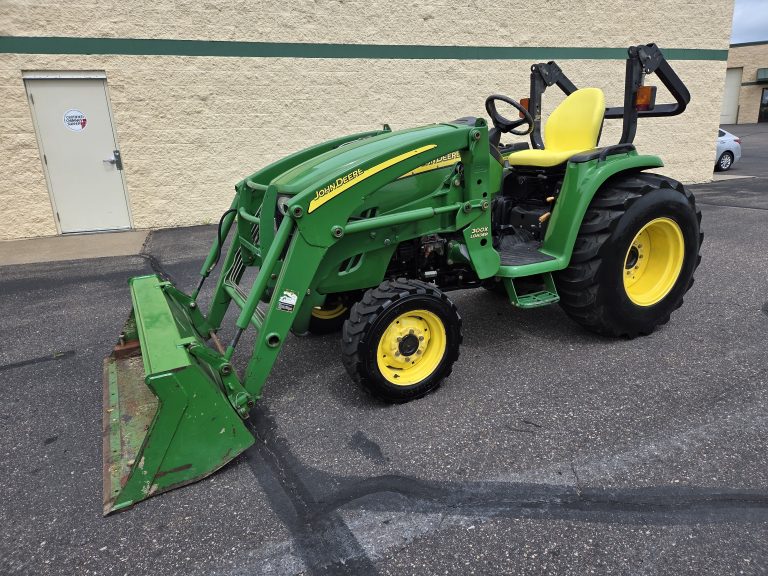 25hp Yanmar non emissions diesel engine, 106 hours, 300e loader with quick release bucket, hydrostatic transmission, r4 tires, 4wd, rear 3 point and pto, JD