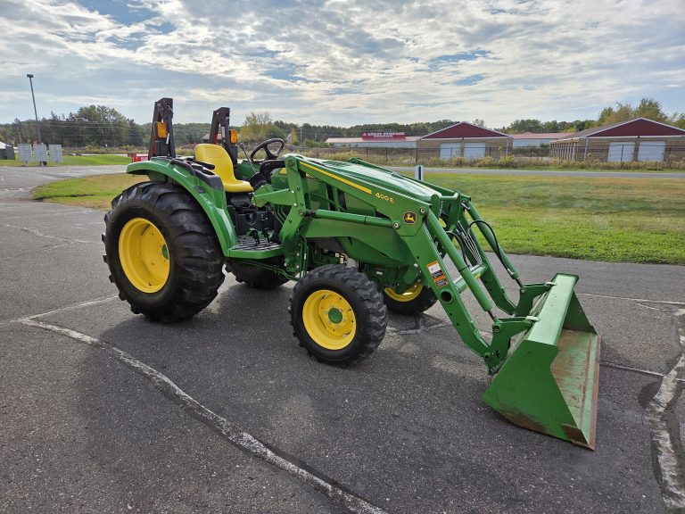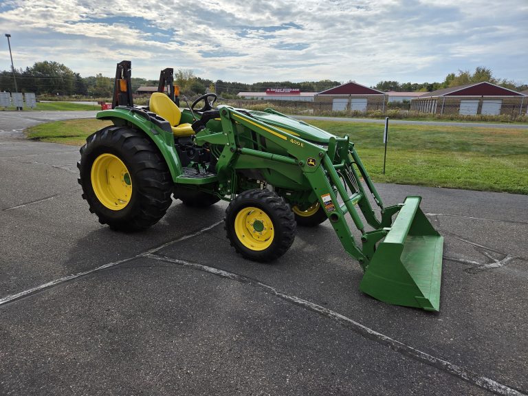 44hp Yanmar diesel engine, 400e loader with quick release bucket, hydrostatic transmission, r4 tires, rear pto, rear 3 point, JD factory warranty