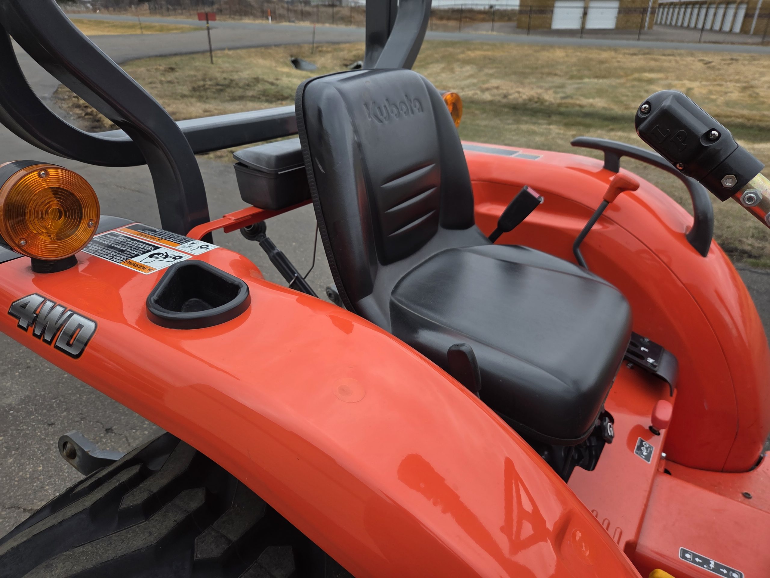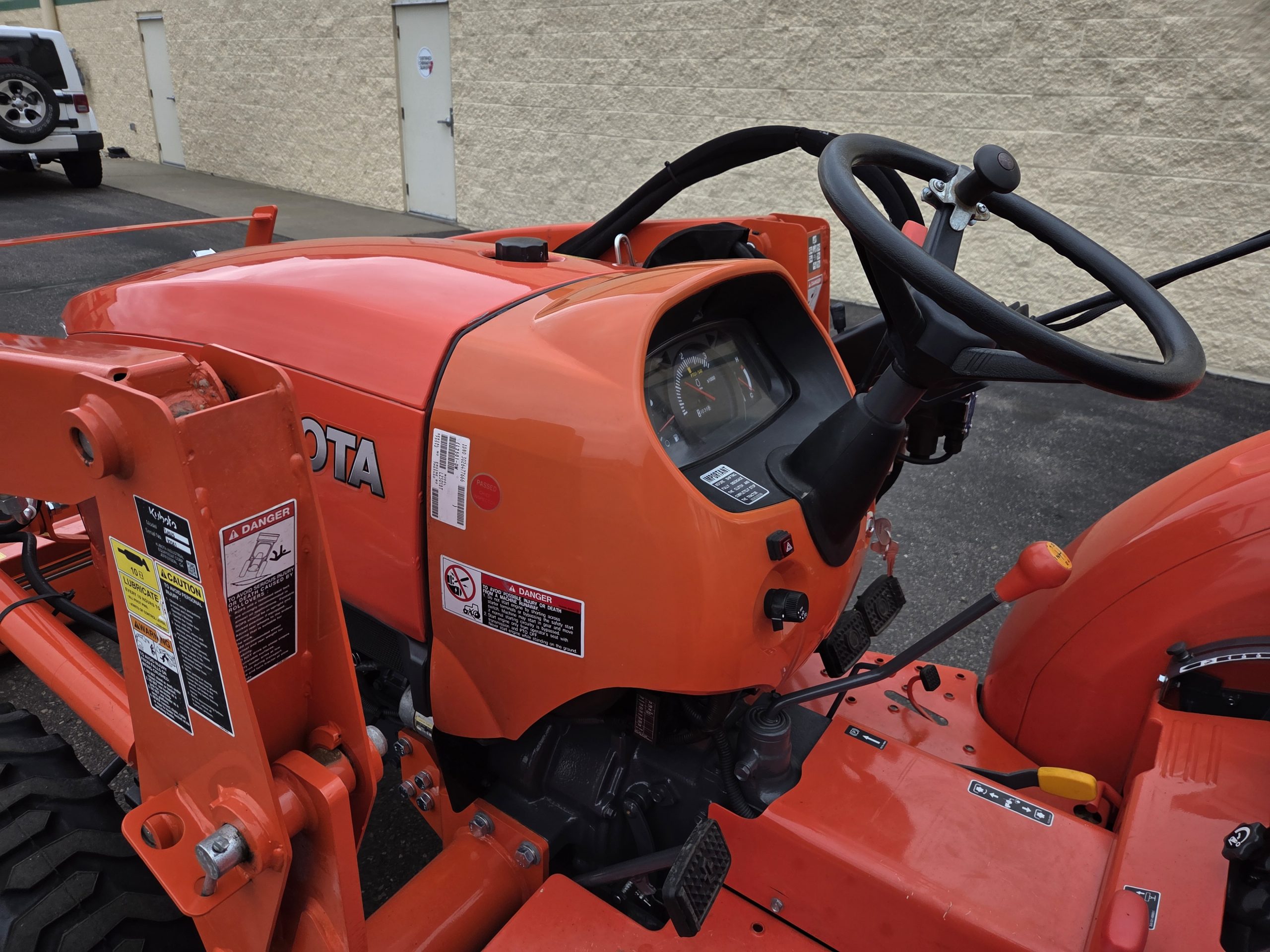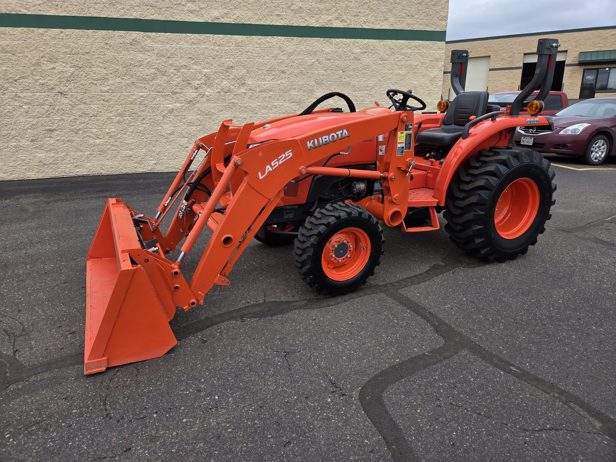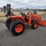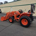 25hp Kubota non emissions diesel engine, 38 hours, LA525 removable loader with skid steer style quick release bucket, 3rd valve hydraulics ran to front of loader, r4 tires, 4wd, rear pto, rear 3 point