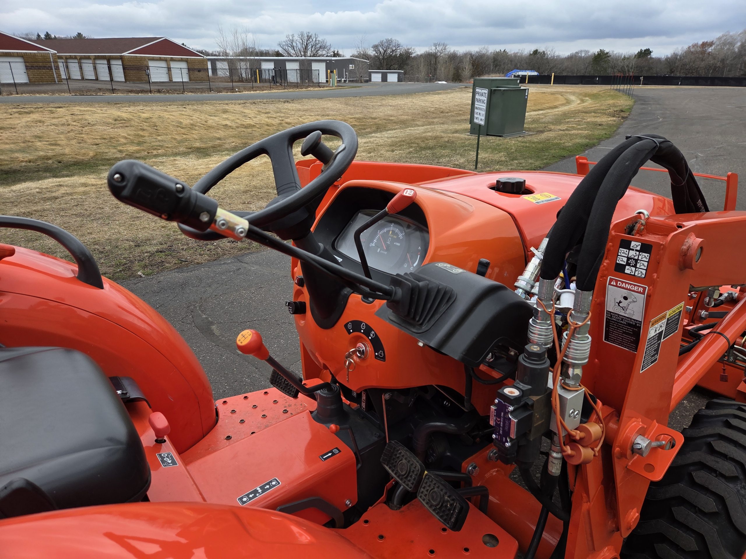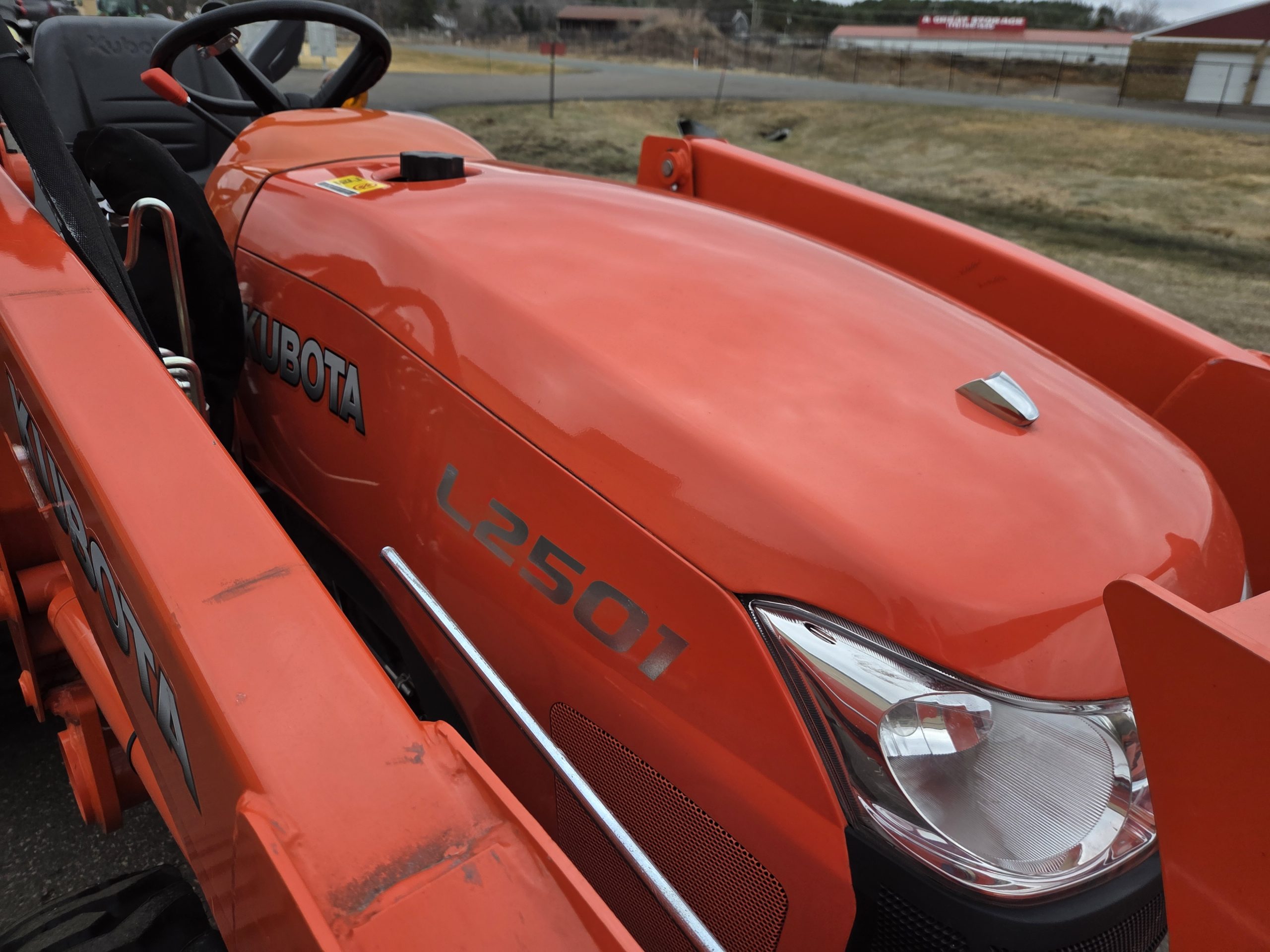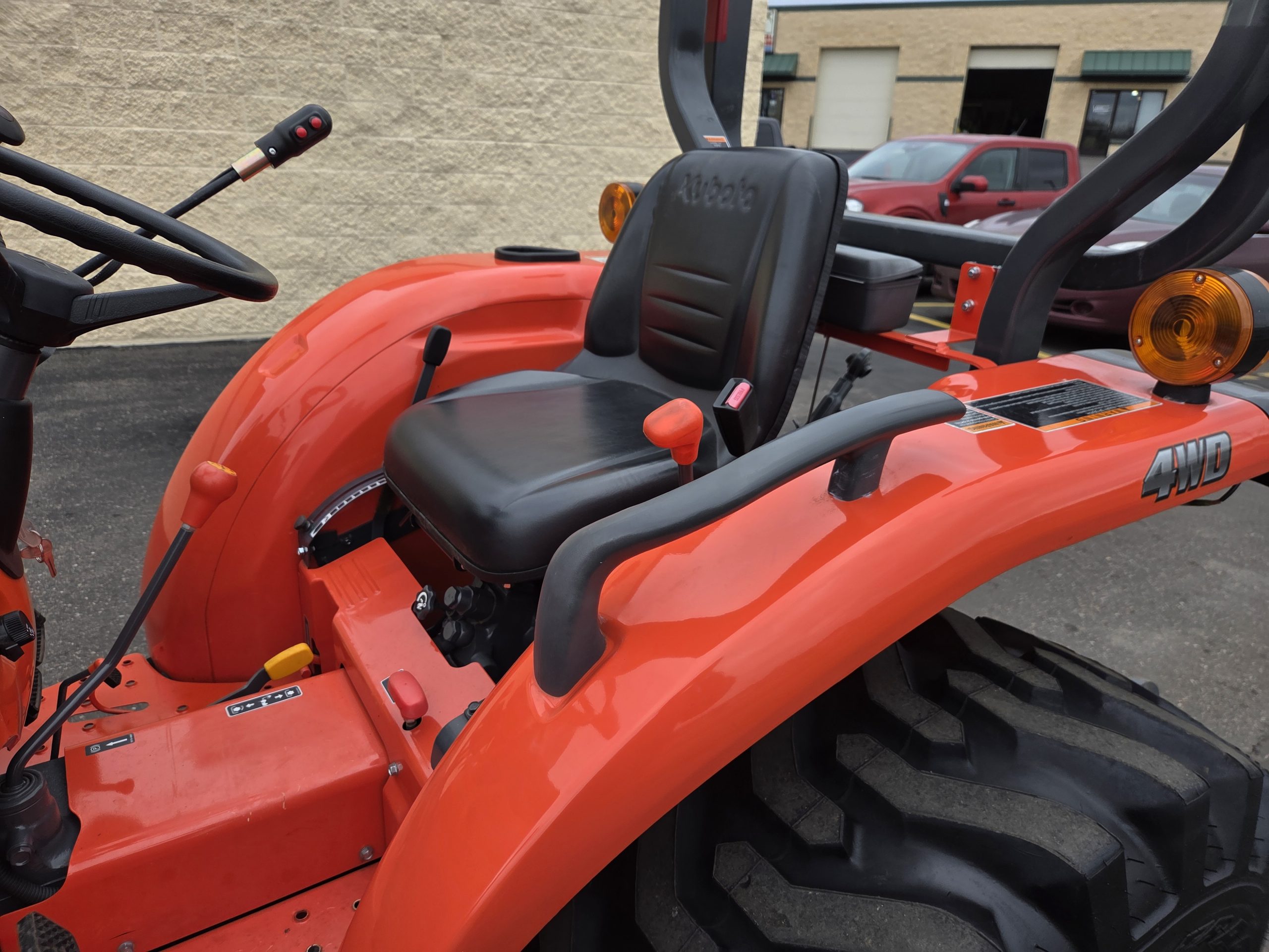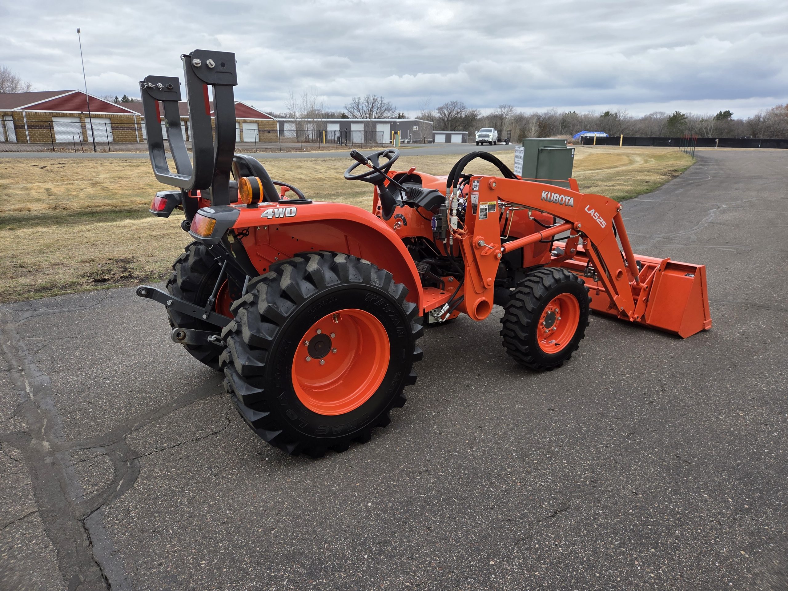 25hp Kubota non emissions diesel engine, 38 hours, LA525 removable loader with skid steer style quick release bucket, 3rd valve hydraulics ran to front of loader, r4 tires, 4wd, rear pto, rear 3 point